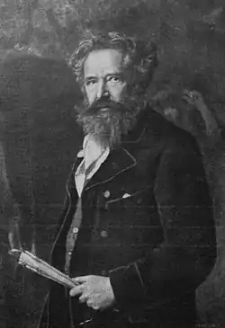 Árpád Feszty (Hungarian: [ˈaːrpaːd ˈfɛsc]; 21 December 1856 – 1 June 1914) was a Hungarian painter. He was born in the town of Ógyalla (then Hungary, now Hurbanovo, Slovakia). His ancestors were German settlers (the original family name was Rehrenbeck). He was the fifth child of Silvester Rehrenbeck (1819–1910), an affluent landowner at Ógyalla, and his wife Jozefa (Linzmayer). Silvester was ennobled by the emperor on 21 April 1887, and the family thereafter took the name Martosi Feszty (or, in German: Feszty von Martos).[1] Feszty mostly painted scenes from Hungarian history and religion.