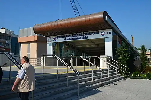 Üsküdar railway station is an underground railway station located beneath Üsküdar square in Istanbul. It was opened on 29 October 2013 along with the new trans-Bosphorus Marmaray rail tunnel.[2] TCDD Taşımacılık operates commuter trains east to Ayrılık Çeşmesi and west to Kazlıçeşme (on the European side) within 6- to 10-minute intervals. Due to the stations central location, connections to several city bus routes are available.