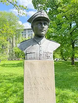 Łukasz Ciepliński (Polish pronunciation: [ˈwukaʂ t͡ɕɛˈplij̃skʲi]; 26 November 1913 – 1 March 1951) was a Polish soldier who fought in the Polish anti-Nazi and anti-communist resistance movements.[1] He used various aliases: Pług, Ostrowski, Ludwik, Grzmot, and Bogdan. Ciepliński was executed at Mokotów Prison in Warsaw, with a shot to the back of the head by the Polish secret police, Urząd Bezpieczeństwa.