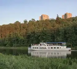 Despite the proximity of the city centre, the Žirmūnai bank of the River Neris is covered with a strip of dense deciduous forest that begins at the Žirmūnai Bridge and continues upstream (northeasterly). The forested strip is largely uninterrupted, with gaps near bridges. At the approximate centrepoint of the Žirmūnai shoreline,[7] the forest surrounds a backwater, which had been used to park disused passenger ferries. The forest's northernmost section is part of a botanical nature reserve within Verkiai Regional Park.