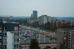 The first microdistrict, or "Žirmūnai I", which is district's middle section, was built in 1962–67 in accordance with a project by architect Birutė Kasperavičienė, who was awarded the USSR State Prize in 1968, together with architect Bronislovas Krūminis and engineers Ṧmuelis Liubeckis and Vaclovas Zubras;[27] it was the first time this award had been presented to the designers of a large-scale residential construction. The second microdistrict, "Žirmūnai II", which is the southernmost of the three, was built in 1964–68, its architect being Nijolė Chlomauskienė. And the third, the northernmost microdistrict, "Žirmūnai III" designed by architect Laima Burneikienė was built in 1964–69 in the site of the former village of Paneriškės.[28] The city district was then named after the formerly Lithuanian[29] village of Žirmūnai (Zhirmuny), now situated 16 kilometres from the Lithuania–Belarus border in the Voranauski District, Hrodna province of Belarus. This village is where Karol Podczaszyński, an architect and designer of Tuskulėnai Manor, was born. Hence the future district's major street Žirmūnų was named after the village as it is seen in the map of 1942[26] and gave its name to the entire district.