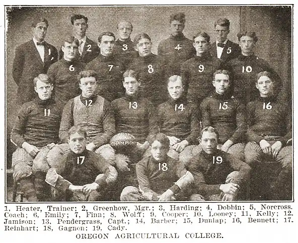 7. ^ a b "The Schedule: And Other Interesting Facts About OAC Football," Corvallis Gazette, Sept. 24, 1907, p. 1.