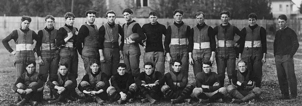 Corvallis was in a fever pitch for the 12th annual battle with the rivals from down the road, the University of Oregon Webfoots. A special excursion train of 18 cars was reserved to bring football fans to Kincaid Field to root on the Aggies.[20] "There has never been more whole-souled enthusiasm manifested by the supporters of the Orange than was shown at the train this morning," one participant declared.[20] More than 1,000 fans paid $1 each [$33.50 in 2025 dollars] for a ticket to ride the rails to Eugene — an assemblage which included "almost every student attending the college, the faculty, and many townspeople."[20]