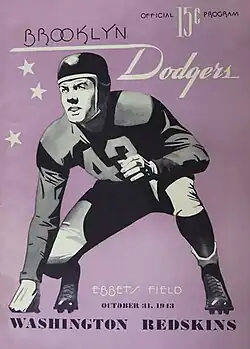 The 1943 Brooklyn Dodgers season marked their 14th year in the National Football League (NFL) and their final season before becoming the Brooklyn Tigers. The team failed to improve on their previous season's output of 3–8, winning only two games.[1] They failed to qualify for the playoffs for the 12th consecutive season and were shut out in their first four games.