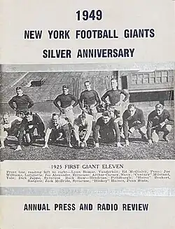 The 1949 New York Giants season was the franchise's 25th season in the National Football League. The Giants finished in sole possession of 3rd place with a record of 6 wins and 6 losses.
