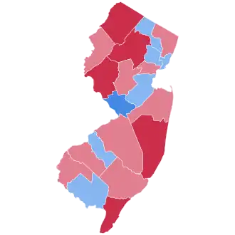 Kennedy carried New Jersey with 49.96% of the vote to Nixon's 49.16%, a margin of 0.80%.[2] Kennedy managed to narrowly win the state despite winning only seven counties to Nixon's 14. However, Kennedy managed to rack up large margins decisively winning some of the most heavily populated counties in the state, while keeping the results very close in those heavily populated counties that he lost. As the first Roman Catholic nominee, from an urban Irish immigrant background, John Kennedy appealed strongly to working-class Catholics and other urban ethnic immigrant groups,[3] who turned out in record numbers to support him. Thus Kennedy's support base was condensed into mostly heavily populated urban areas.