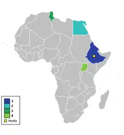 Nine nations initially entered the competition, with Ethiopia and Egypt both automatically qualified as hosts and title holders respectively. Sudan withdrew before the draw, and Morocco withdrew before play began, thus leaving five teams vying for the remaining two spots in the finals. This was the first time Sudan did not compete in the tournament.