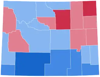 As of 2024, this remains the last presidential election in which Wyoming has voted Democratic; in fact, no Democrat since has reached even 40% of the state's vote. This is also the last occasion that Laramie County (home to the capital and largest city of Cheyenne), Fremont County, Sheridan County, Park County, Uinta County, Lincoln County, Goshen County, Big Horn County, Platte County, or Hot Springs County have voted for a Democratic presidential nominee.[8]