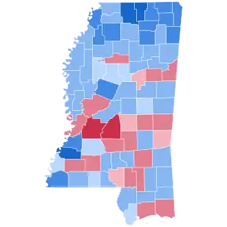 As of the 2024 presidential election, this is the last time a Democrat won the state of Mississippi, as well as Hancock County, Neshoba County, DeSoto County, Carroll County, Covington County, Pearl River County, George County, Wayne County, Stone County, Greene County, Perry County, and Webster County.[2]