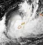Early on March 16, the FMS reported that based on satellite imagery and guidance from other meteorological centers, the system had 10-minute sustained wind speeds of 85 km/h (55 mph) as it passed over Southern Tonga.[21][26] Hina subsequently passed over the islands of Tongatapu and ʻEua in southern Tonga at around 0830 UTC and took less than 2 hours to inflict considerable damage on the islands.[1][21] The system subsequently emerged back into the South Pacific Ocean, with the FMS estimating that the system had storm force winds of about 95 km/h (60 mph).[21] Later that day the NPMOC estimated that Hina had peak 1-minute sustained windspeeds of 110 km/h (70 mph) as it rapidly moved below 25°S and out of the FMS's area of responsibility.[21][27] After impacting Tonga the system moved rapidly towards the south-southeast and weakened below tropical cyclone intensity, before it was last noted on March 21, to the south of the Pitcairn Islands.[1][28] During the systems post analysis it was determined that the warning centres had underestimated Hina's intensity as it passed over Tonga, after damage had been greater than expected in the island nation. the FMS subsequently deduced that Hina was a minimal category 3 severe tropical cyclone, with peak 10-minute sustained wind speeds of 120 km/h (75 mph) when it impacted Tonga.[21] The NPMOC also revised their estimate of Hina's peak 1-minute sustained wind speeds from 110 km/h (70 mph) to 140 km/h (85 mph) during post analysis, which made the system equivalent to a category one hurricane on the Saffir–Simpson hurricane wind scale.[7][27][29]