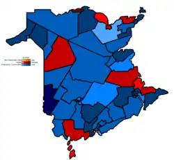 Progressive Conservative Bernard Lord 55 6 9 44 +289% 209,008 53.0% +22.1%