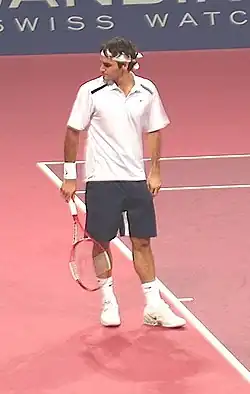 Federer entered his hometown tournament, the Swiss Indoors held in Basel, having never won it despite having reached the final in 2000 and 2001. Federer won a final-set tiebreaker against Paradorn Srichaphan in the semifinals, to advance to the final where he defeated González, 6–3, 6–2, 7–6(7–3). This victory was especially touching for Federer who had grown up in Basel and had been a ball boy at the tournament during his youth.[9]
