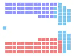 | Total seats: | 4 | 5 | 11 | 5 | 6 | 28 | 5 | 3 | 2 | 1 | 4 | 8 | 5 | 6 | 8 | 21 | 3 | ||