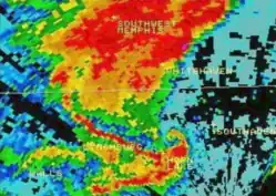 Terminal Doppler radar scan of the supercell that produced the Southaven/Memphis tornado.
