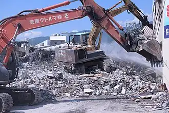 The Kaohsiung Metro system was temporarily suspended due to the shaking, and objects fell from shelves in Taitung City, where an old house collapsed.[29][1] In Luye, part of the Gaoliao Bridge had been severely damaged.[30] A shopping mall in Kaohsiung City suffered cracks in floors and ceilings.[31] In Fuli, the wall of a house collapsed.[32] The Wan'an Brick Factory, a historical monument in Chishang, collapsed.[33] Eight people suffered minor injuries,[34][35] and a man in Minxiong had to be treated for injuries after suffering a heart attack during the earthquake.[36]