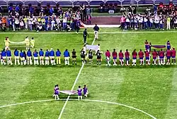 During the World Cup, Keira Walsh (England) and Laia Codina and Aitana Bonmatí (Spain) experienced injuries, but were fit to continue,[34][35][36] with all three contributing to Barcelona being the most-represented club in the semifinals: England, Spain, and Sweden made it to the final four.[37] Following their semifinal victories, Spain and England both reached the 2023 FIFA Women's World Cup final for the first time. Between the finalists, there were 11 Barcelona players: Batlle, Bonmatí, Caldentey, Codina, Cata Coll, Salma Paralluelo, Irene Paredes, María Pérez, and Alexia Putellas for Spain, and Walsh and Lucy Bronze for England.[38] Sweden, including Fridolina Rolfö lost their semi-final but went on to win the bronze medal match, and Rolfö was named player of the match.[39]