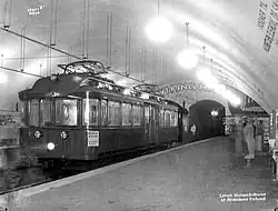 Holmenkolbane suburban tram car at Nationaltheatret station in 1928