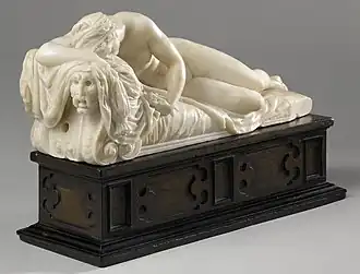 In the 3rd century BC the Etruscans used the alabaster of Tuscany from the area of modern-day Volterra to produce funeral urns, possibly taught by Greek artists.[23] During the Middle Ages the craft of alabaster was almost completely forgotten.[23] A revival started in the mid-16th century, and until the beginning of the 17th century alabaster work was strictly artistic and did not expand to form a large industry.[24]