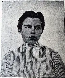 It is unknown exactly when Antonov became involved in radical politics.[2] At some point he joined the Socialist Revolutionary Party. He first appears on police records as a known revolutionary in 1908, when he travelled to Tambov to establish connections between his group and the Tambov Socialist Revolutionaries.[3] Antonov became an "expropriator", someone who carried out robberies to support the revolutionary cause (called "expropriations" by revolutionaries). Antonov is associated with the robbery of a railway station in Inzhavino, where a note was left stating the exact amount taken "by the party of anarchists-individualists", signed by "a member of the party".[4] He was also involved in the robbery of a bank in Kaninskii, where the amount taken was entered into the accounts book as being confiscated by "the Volga Union of Independent Socialist-Revolutionaries".[4]