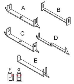 Hevelius' design[2] featured a pivot point with a vertical cylinder and a vane at the observer's end. The vane had two narrow slits that were spaced precisely the same distance apart as the diameter of the cylinder (in the diagram, the portion of the vane between the slits is removed for clarity; the left and right edges of the opening represent the slits). If the observer could sight a star on only one side of the cylinder, as seen in F, the alignment was off. By carefully moving the vane so that the star could just barely be seen on either side of the cylinder (G), the alidade was aligned with the position of the star. This could not be used with a closely located object. A star, being so far away as to exhibit no parallax to the naked-eye, would be observable as a point source simultaneously on both sides.