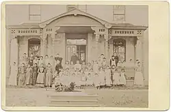 Children were typically immersed in the Anglo-American culture of the upper class. Schools forced removal of indigenous cultural signifiers: cutting the children's hair, having them wear American-style uniforms, forbidding them from speaking their mother tongues, and replacing their tribal names with English language names (saints' names under some religious orders) for use at the schools, as part of assimilation and to Christianize them.[3] The schools were usually harsh, especially for younger children who had been forcibly separated from their families and forced to abandon their Native American identities and cultures. Children sometimes died in the school system due to infectious disease.[3] Investigations of the later 20th century revealed cases of physical, emotional, and sexual abuse.[4]