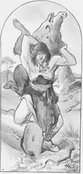 Bivoj is a Czech legendary hero, who was supposed to catch a wild boar by his ears at Kavčí Mountain, and take him on his back to Libušín Castle. He was to marry Kazi for this act.