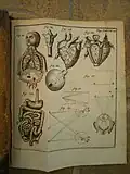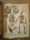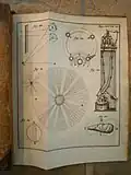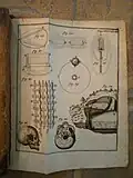 These Latin physics textbooks each contain eight plates with descriptions and images of a variety of contemporary physics devices including manometers (fluid statics), lenses/prisms (refraction), and various simple machines.[16][17][18] Coverage of electricity is relatively sparse, although many other diverse topics are surveyed, including mechanics, magnetism, celestial mechanics, fluid drag experiments, mineralogy, and human anatomy.[19][20][21] Extensive bibliographical references are provided.[22][23]