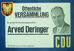 ![]() Arved Deringer on a campaign poster for the 1961 federal elections | |