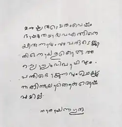 Handwriting of Narayana Guru