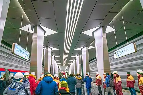 Aviamotornaya (Russian: Авиамоторная, lit.'Aircraft engines'pronunciation) is a station on the Bolshaya Koltsevaya line of the Moscow Metro. The station was opened on 27 March 2020 as part of Nekrasovskaya line extension.[2]