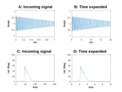 In real time mode, with or without an associated heterodyne or FD detector, the slowed down calls can be heard as a drawn-out bat call at audible frequencies. Therefore, fast FM calls can be heard as a descending note instead of a click. Thus it is possible to hear the difference between FM calls which just sound like clicks on the other types of detector.