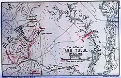 The Battle of Abu Tellul (called the Affair of Abu Tellul by the British Battles Nomenclature Committee)[6] was fought on 14 July 1918 during the Sinai and Palestine Campaign of World War I after German and Ottoman Empire forces attacked the British Empire garrison in the Jordan Valley. The valley had been occupied by the Egyptian Expeditionary Force (EEF) from February 1918 when Jericho was captured. Following two raids east of the River Jordan by the EEF the first in March and second in April the defence of the valley became the responsibility of the Desert Mounted Corps.