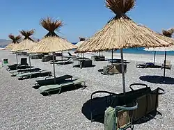 Beach furniture and umbrellas