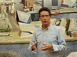 Ben Johnson, in front of his Liverpool Cityscape, at the Walker Art Gallery, Liverpool in 2008