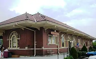 Berea Depot is a former railway station in Berea, Kentucky. The Kentucky Central Railroad acquired the site and built a small wooden station in 1883.[1] Demolition of the old depot began in February 1905, with a new expanded building constructed that year.[2] The modern brick depot is the third on the site and was built in 1917.[1][3] Passenger service ended on March 7, 1968. It was added to the National Register of Historic Places on August 22, 1975, and subsequently purchased by the City of Berea.[1] The depot building was renovated in the early 1980s by the non-profit group Marketing Appalachia's Traditional Community Handicrafts (MATCH), who opened a shop in an addition to the original station building.[4]