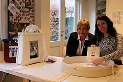 The creator and inventor Elizabeth Suzana Kozina, on the left, with one of her bags.