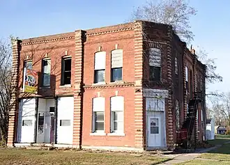 The Bicksler Block is an historic building located in Salem, Iowa, United States. John Bicksler had this commercial building built in 1886. The two story, brick structure is a combination of the Romanesque Revival and the Italianate styles. Salem's central business district was plagued by fires from 1886 to 1933. This building was built after the first major fire to effect the town in 1886.[2] The store front on the east side of the building housed a bank into the early 1900s and then the local post office was located here until 1967. The western half of the building has housed a variety of businesses over the years, including: clothing stores, two different milliners, a restaurant, and a pool hall. The second floor housed a variety of offices, including a dentist. The American Legion acquired the building from the Bicksler family in 1950. It was listed on the National Register of Historic Places in 2010.[1]