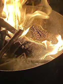 Biochar is a form of charcoal, sometimes modified, that is intended for organic use, as in soil. It is the lightweight black remnants remaining after the pyrolysis of biomass, consisting of carbon and ashes.[1] Despite its name, biochar is sterile immediately after production and only gains biological life following assisted or incidental exposure to biota. Biochar is defined by the International Biochar Initiative as the "solid material obtained from the thermochemical conversion of biomass in an oxygen-limited environment".[2]