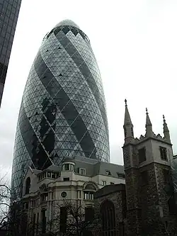 - ^ Ehsaan, "Lord Foster's Natural Inspiration: The Gherkin Tower," biomimetic architecture (blog), March 24, 2010, http://www.biomimetic-architecture.com/2010/lord-fosters-natural-inspiration-the-gherkin-tower/ Archived 2012-05-18 at the Wayback Machine.