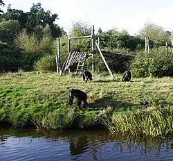 The Boat Safari next to Lemur Land took visitors to view Chimp Island - an island home to a family of chimpanzees. The boat trips stopped running in 2019 and have been replaced in 2025 by a train ride. Visitors can also choose to walk down the 'chimp path', where there is a viewing platform on the far side of the animals' house. [25]