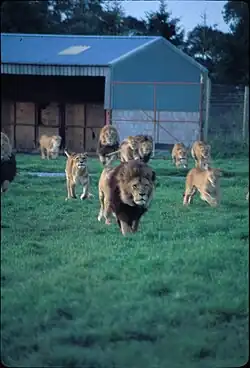 The second reserve is home solely to African lions. They are also part of a Europe-wide breeding programme, with two of the females having been born in the park.[16][17] There is currently one male, Zulu, introduced in February 2016 through an exchange with Wildlands Adventure Zoo Emmen to ensure genetic diversity is maintained.[18]