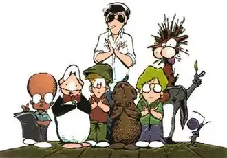 Major characters (from left to right): Oliver, Opus, Binkley, Steve Dallas, Portnoy, Milo, Bill, Hodge-Podge, and Milquetoast