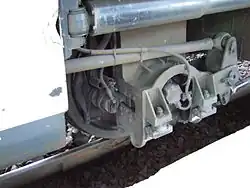 Variable gauge axles on a Spanish train designed for intercity travel to France