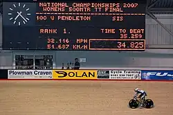 The British National Individual Time Trial Championships also known as the Kilo (for men) are held annually as part of the British National Track Championships organised by British Cycling. A women's championship was held for the first time in 1989.[1]