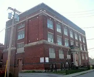 Buffalo Public School No. 57, also known as Broadway Village Elementary Community School, is a historic school building located in the Broadway-Fillmore neighborhood of Buffalo, Erie County, New York. It was built in 1914, and is a three-story, red brick building over a full basement with Classical Revival detailing. It is connected to a one-story auditorium building by a one-story hyphen. The building was originally constructed as an addition to the original 1897 Public School No. 57, which was demolished in 1960.[2] The school has been redeveloped as a multi-use facility including apartments, offices, and a community center.