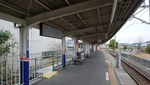 The station consists of a single un-numbered four-car-long side platform serving a bi-directional track.