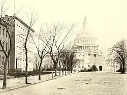 The building contained three units, one specifically constructed as a fireproof storage space.[1] The other two were built as residences, and later were converted to office space.[2] It was directly to the south of the United States Capitol, across what is now Independence Avenue.[3]
