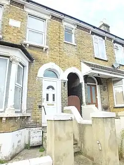 The first houses were identical to their neighbour, but soon they became 'handed' (i.e. differentiated into right and left) as it was cheaper to build a shared chimney stack. Where they existed, rear extensions shared a wall, and there was less loss of light to the middle room window.[9] An early modification to the basic design shifted the staircase to be perpendicular to the street, sometimes with the addition of a ground floor hallway. A rear adjoined scullery would also be added, generally with a third, smaller bedroom built on top, which modern owners often converted into an upstairs bathroom.[10] The privy began to be built adjoining the scullery block, with a water closet connected to mains drainage.[6]