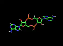 Cyclic di-AMP (also called c-di-AMP and c-di-adenosine monophosphate) is a second messenger used in signal transduction in bacteria and archaea.[1][2][3] It is present in many Gram-positive bacteria, some Gram-negative species, and archaea of the phylum Euryarchaeota.[2][3]