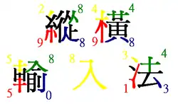 The encoding uses a maximum of 4 digits ("0" - "9") to represent a Chinese character. All possible shapes of strokes that forms any given Chinese character are classified into 10 groups, each represented by one of the ten possible digits 0-9. Chinese characters can then be input by following the order in which the strokes are identified at the 4 corners of the character. As a result of this simplicity in coding using the ten numeric digits, users typically need to use only a numeric keypad to input Chinese.